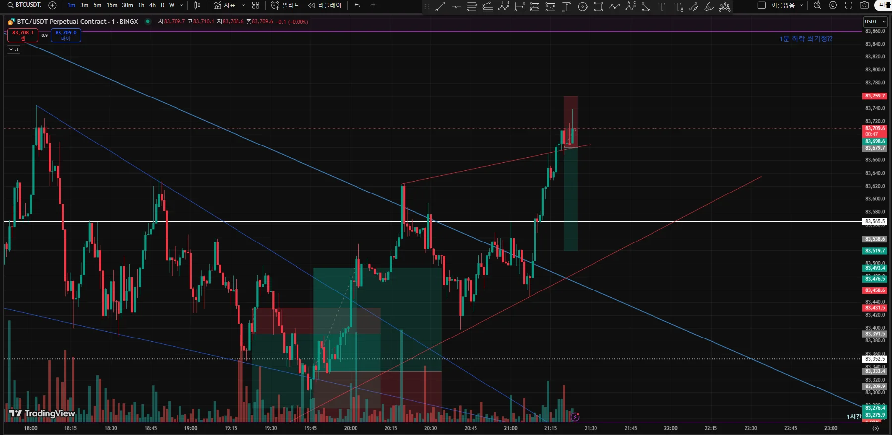 그러면서 쐐기형? 패턴 보임. 위에서 잡음.