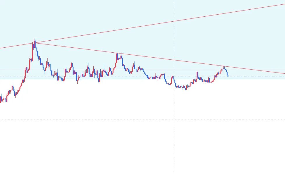 1분봉 고점이 낮아지고 있고, 하락추세선의 유효한 역할 확인