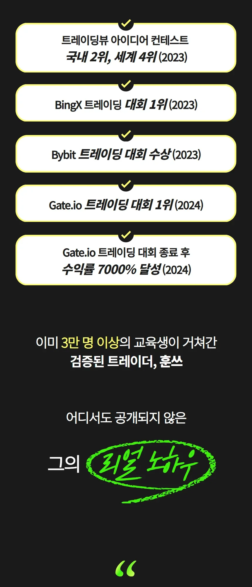 공식 트레이딩 대회를 휩쓸고 있는 트레이더! "진짜" 실력을 보여주는 전문가, 훈쓰 강사님