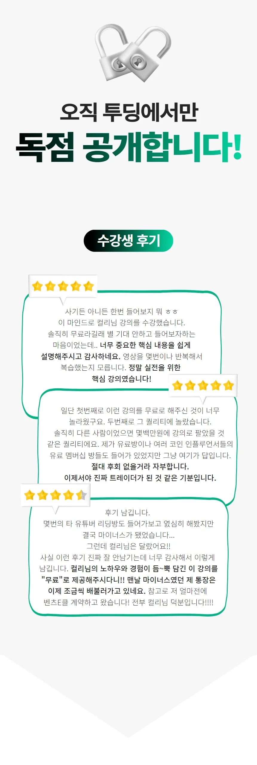 성장으로의 여정에서 이 강의를 반드시 거치게 됩니다. 세계 랭킹 3등 트레이더, 컬리 강사님