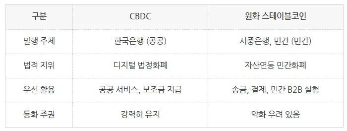 📌 CBDC와 원화 스테이블코인의 정의, 발행 주체, 법적 지위, 활용 목적까지!